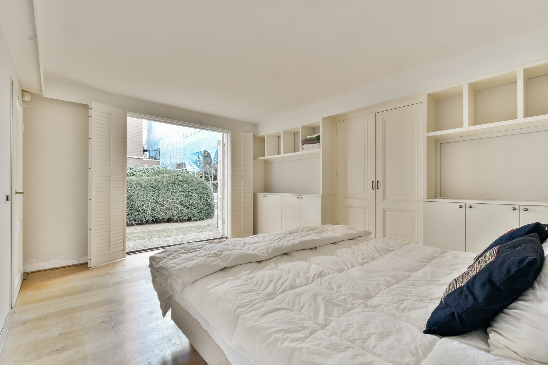 De ruimte is praktisch en sfeervol ingedeeld met drie kantoorvertrekken: een open kantoorruimte aan de voorzijde met pantry, een tussenkamer en een kantoorruimte aan de achterzijde. Alle kamers bieden via openslaande deuren direct toegang tot de zonnige privétuin, wat deze ruimte uniek maakt voor werken in het centrum van Amsterdam.