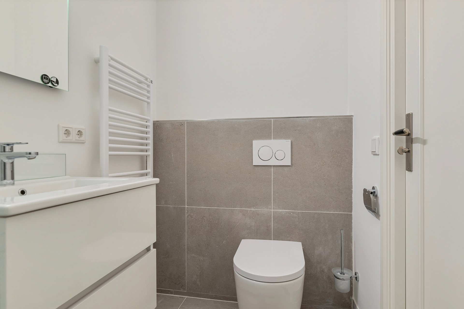 Located at the rear you will find two bedrooms, the most spacious bedroom offers enough space for a large double bed and plenty of closet space. Furthermore, the bedroom provides access to the wide rear balcony where you can enjoy. Also located here is a separate smaller (sleeping) room. The first bathroom is centrally located on this floor and equipped with a bathtub, double sink and walk-in shower. Separate laundry room and toilet with hand basin.
