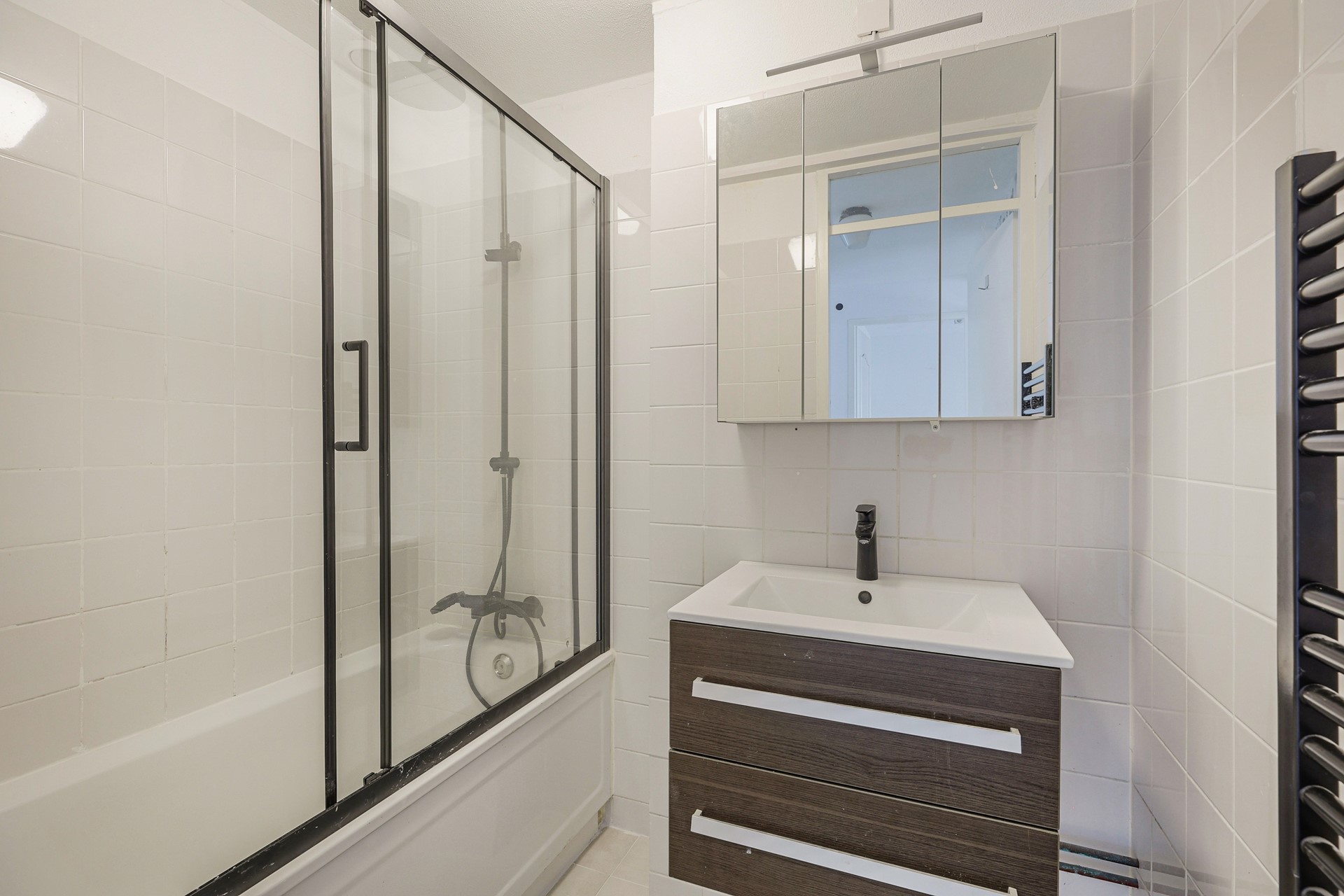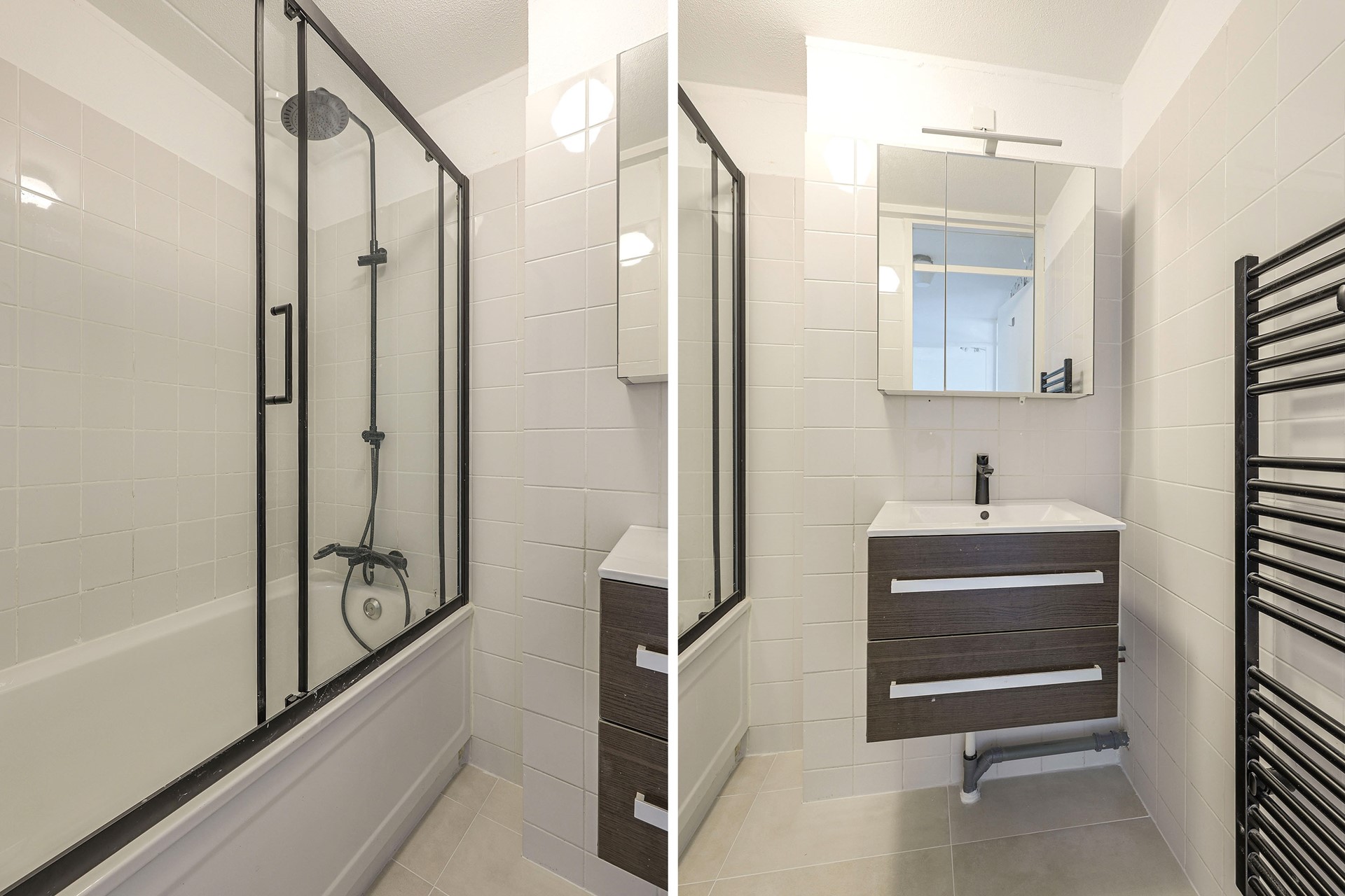 The two bedrooms are quietly situated. Both bedrooms are well-proportioned and offer sufficient space for a double bed and a wardrobe. The luxurious bathroom is fitted with a bathtub with shower and a designer washbasin unit. The toilet with washbasin is located separately.