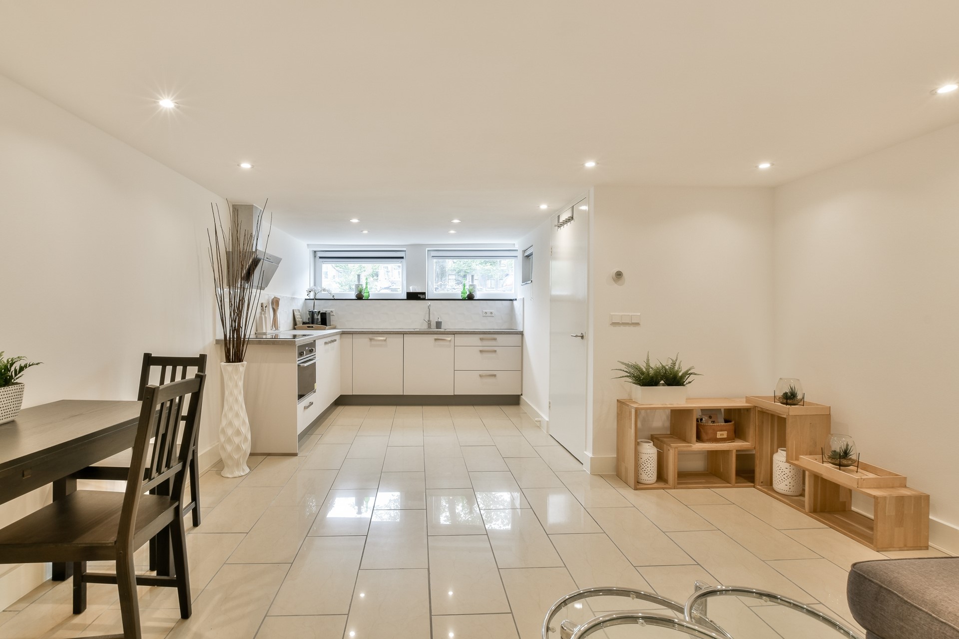 Na het openen van de entreedeur stapt u direct binnen in de ruime woonkamer, wat een heerlijk gevoel van thuiskomen geeft. Aan de voorzijde treft u de luxe uitgevoerde keuken wat is voorzien van alle denkbare inbouwapparatuur zoals een oven, kookplaat, afzuigkap en vaatwasser.