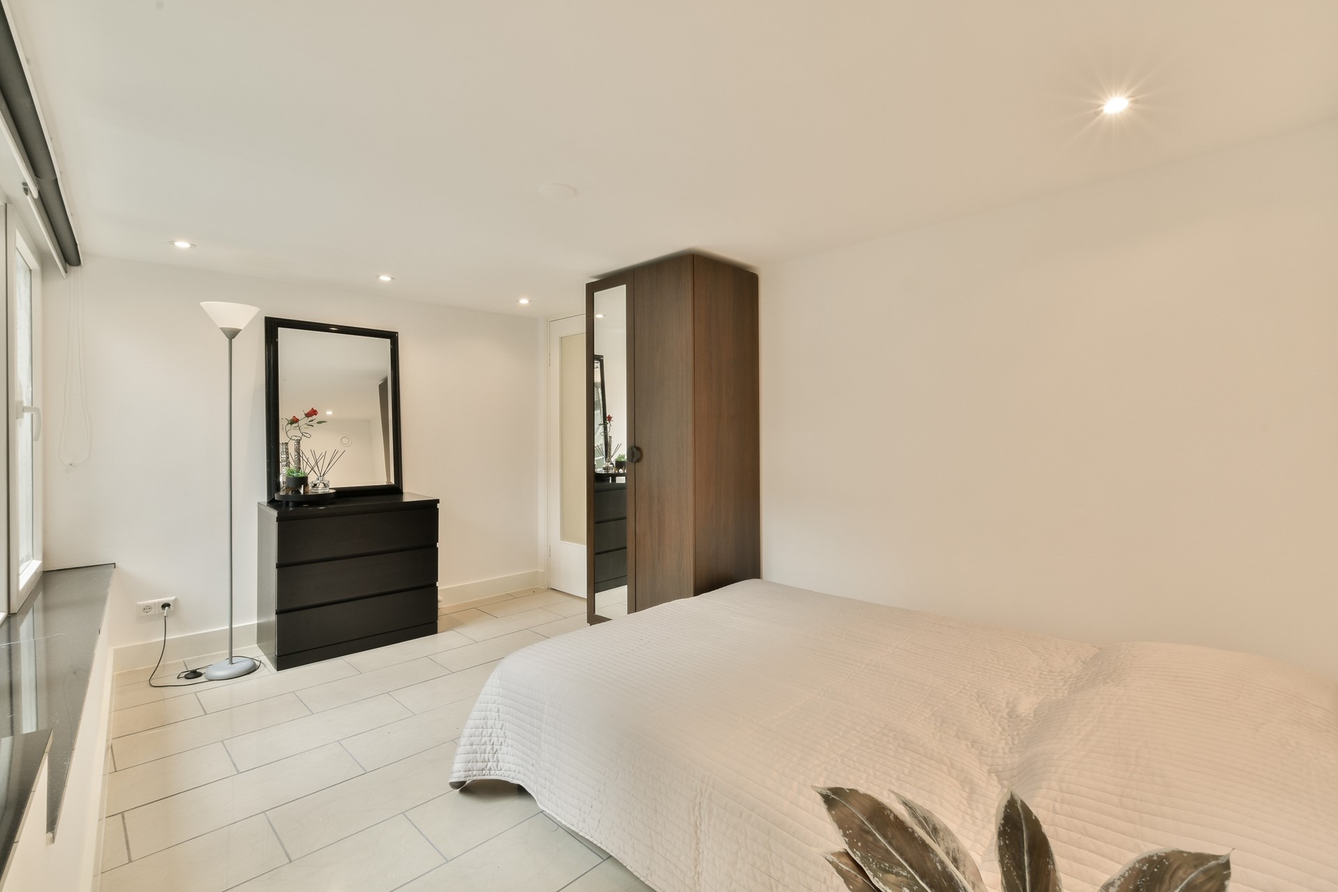 De zeer ruim bemeten en lichte slaapkamer is gesitueerd aan de achterzijde. De slaapkamer biedt toegang tot de fijne zonnige achtertuin.