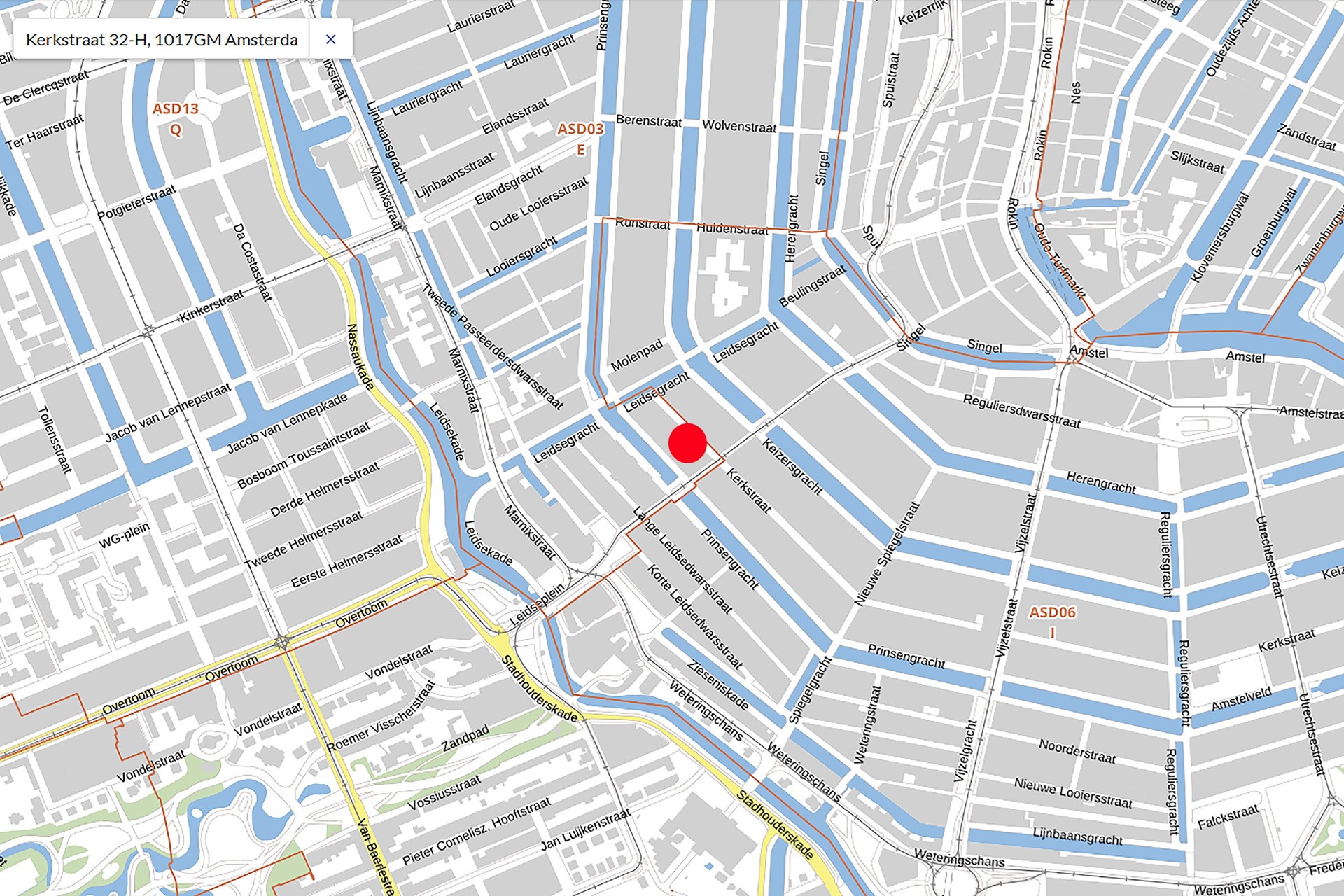 Dit bijzonder fraaie monument is gelegen aan de Kerkstraat tussen de Prinsengracht en Keizersgracht. In de directe omgeving vindt u natuurlijk de geliefde 9-Straatjes met tal van leuke en bekende winkels en gezellige horecagelegenheden. Ook de Jordaan, het Leidseplein/Leidsestraat en het Vondelpark bevinden zich letterlijk op loopafstand.