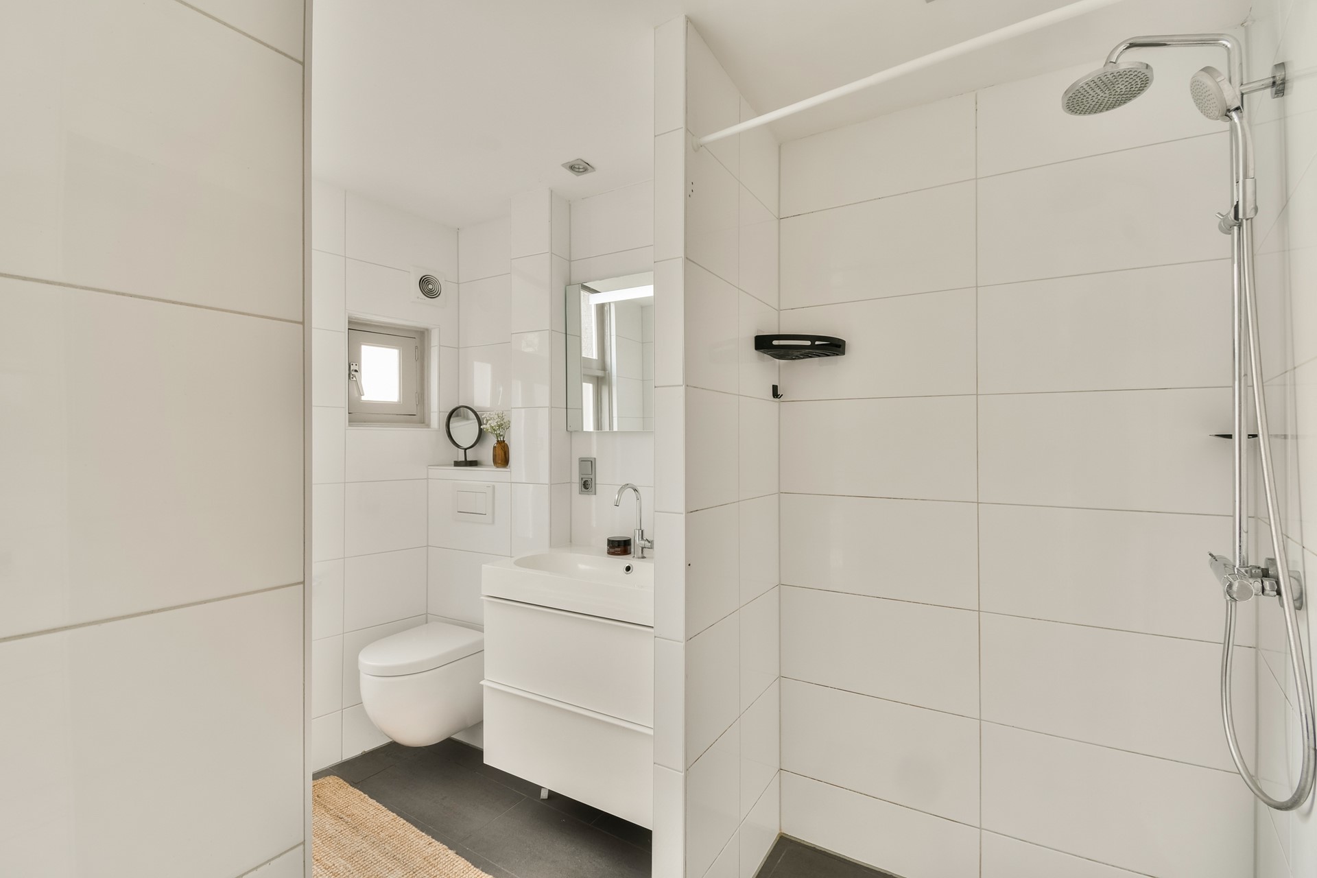 De nette badkamer is centraal in de woning gelegen en beschikt over een douche, ligbad, wastafelmeubel, toilet en aansluiting voor de wasmachine.
