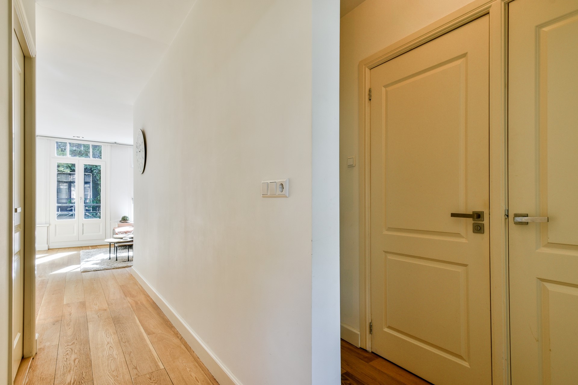 Via het verzorgde gemeenschappelijke trappenhuis bereikt u de entree van de woning op de eerste verdieping. Bij binnenkomst ervaart u direct de prettige lichtinval en de logische indeling van het appartement.