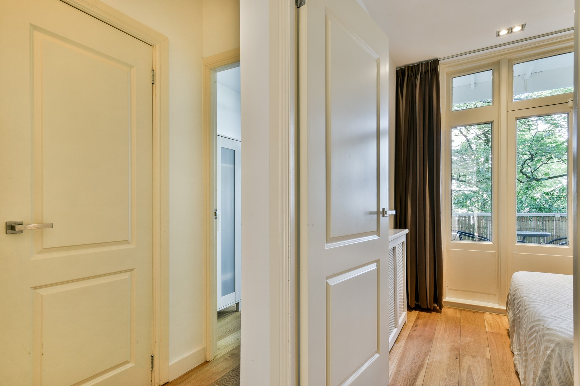 Aan de rustige achterzijde van de woning vindt u twee goed bemeten slaapkamers. De master bedroom biedt ruimte voor een tweepersoonsbed en een grote kledingkast, terwijl de tweede kamer ideaal is als kinder- of werkkamer. Vanuit beide slaapkamers is er toegang tot het balkon, waar u ’s middags en ’s avonds van de zon kunt genieten.